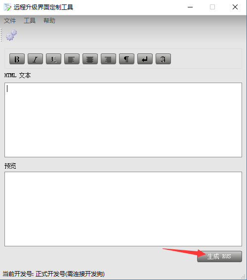 在上面菜單的工具項,選擇【設(shè)置】,勾選【使用正式開發(fā)號】,插上主鎖后點【生成RUS】