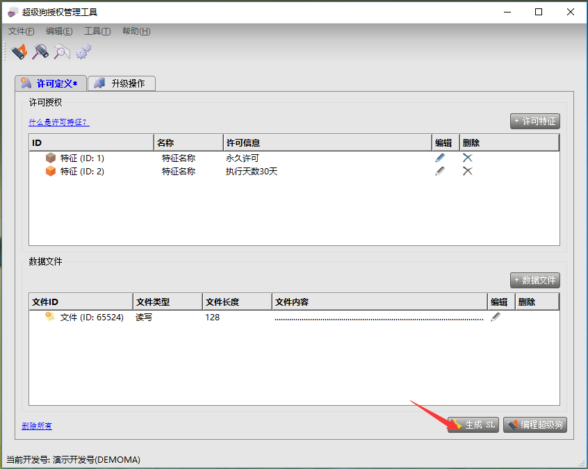 設(shè)置完對應(yīng)的特征,此特征與硬鎖設(shè)置完全一樣,點【生成SL】