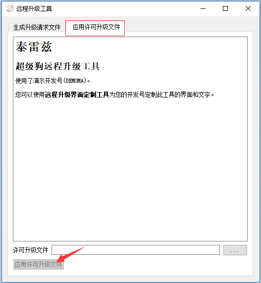 在客戶電腦上打開之前生成的RUS軟鎖安裝工具,選擇【應(yīng)用許可升級文件】項